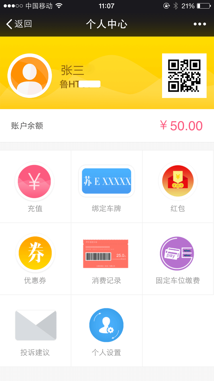 基本功能(néng)和(hé)APP類似,采用(yòng)公®≥Ω衆号模式,減少(shǎo)用(yòng)戶下(xià)載流量,隻要π♠(yào)關注并綁定自(zì)己車(chē)牌即可(kě)成為(wèi)51會 ×∞φ(huì)員(yuán),達到(dào)在線繳費(fè₽☆i)功能(néng)。