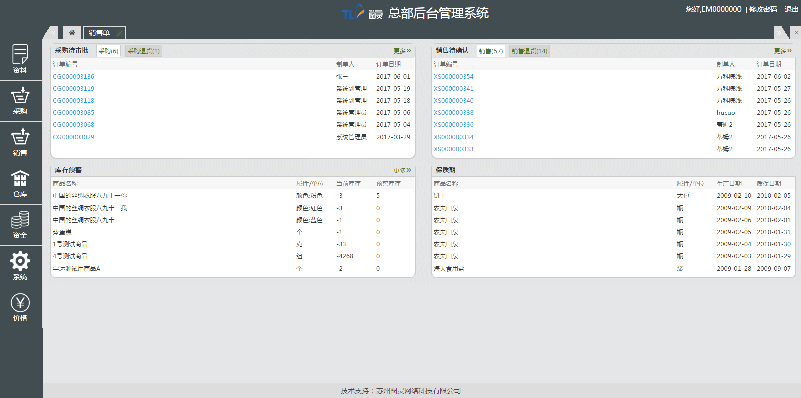 倉儲:具有(yǒu)國(guó)家(jiā)↑♥♣♣專利級的(de)智能(néng)盤點系統;條碼化(huà),儲位化(huà)管理(lǐ),以"先進先出為(wèi)原則,做(zuò)到(dào)安全庫存、保質期預警提醒;γΩ一(yī)鍵清晰庫存周轉率及賬齡報(bào)表;
